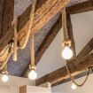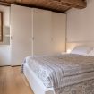 L'appartamento è decorato con stile, con travi di legno a vista.